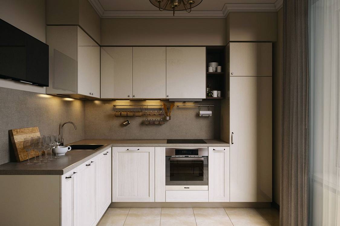 Для создания угловой кухни потребуется сделать качественную подготовку стен – пересечение поверхностей должно быть идеально ровным. Такие работы потребуют дополнительных капиталовложений.