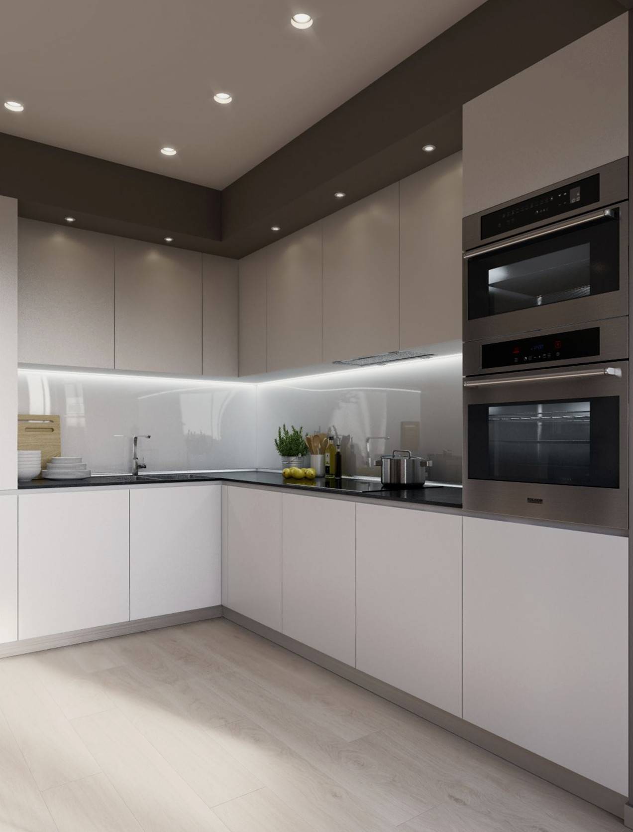 Понравившийся готовый проект можно взять за основу для вашей будущей кухни, поменяв, например, лишь размер модулей, наполнение шкафов и планировку.