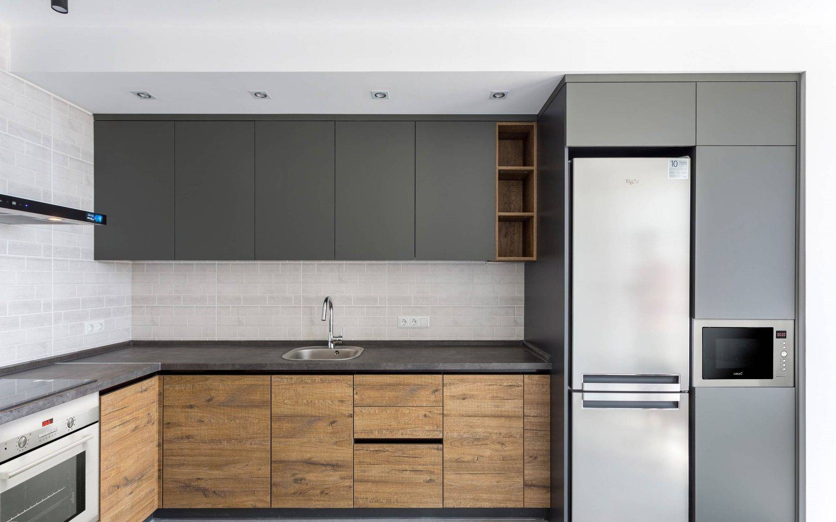 Проект серой кухни фрейм покрытой меламиновой пленкой.