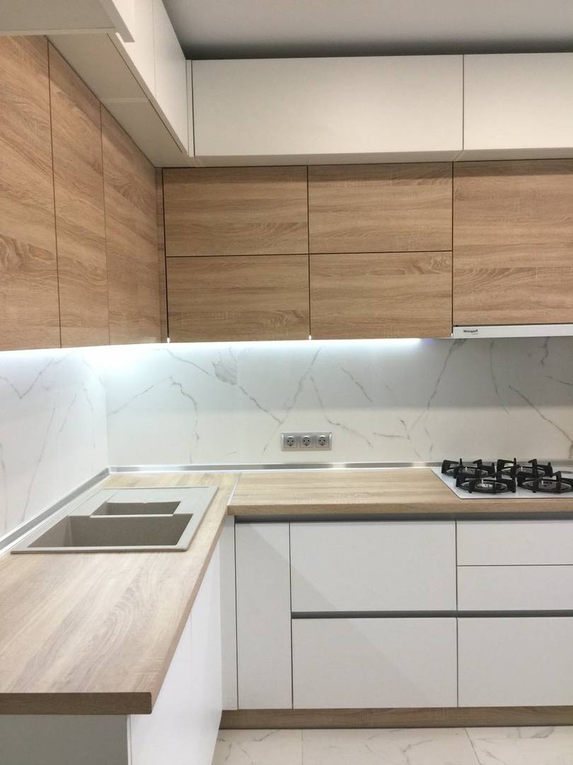 Покупатель может выбрать для своей кухни ЛДСП, МДФ или цельный массив натуральной древесины.