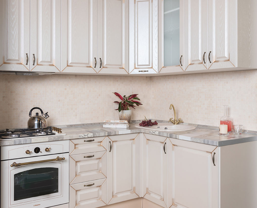 Молочный оттенок визуально расширит кухонное пространство, что важно учесть при обустройстве малогабаритной кухни. Недорогие фасады, изготовленные из шлифованной ДСП с качественной меламиновой плёнкой на поверхности, не требуют тщательного ухода ― они легко очищаются с помощью мягкой влажной тряпочки и мыльного раствора