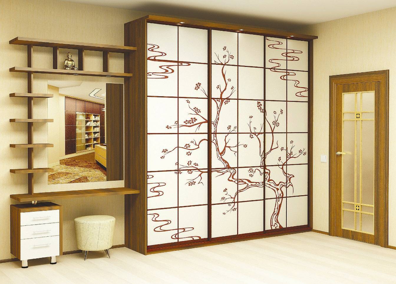 Автономное купе можно переставлять в другую комнату, если позволяет дверной проем. По этой причине шкафы-купе оригинального дизайна делают невысокими – для удобства транспортировки и перестановки. При желании на месте можно дополнить съемными антресолями, но и они должны быть на 10 см ниже потолка, чтобы была возможность установки и разборки.