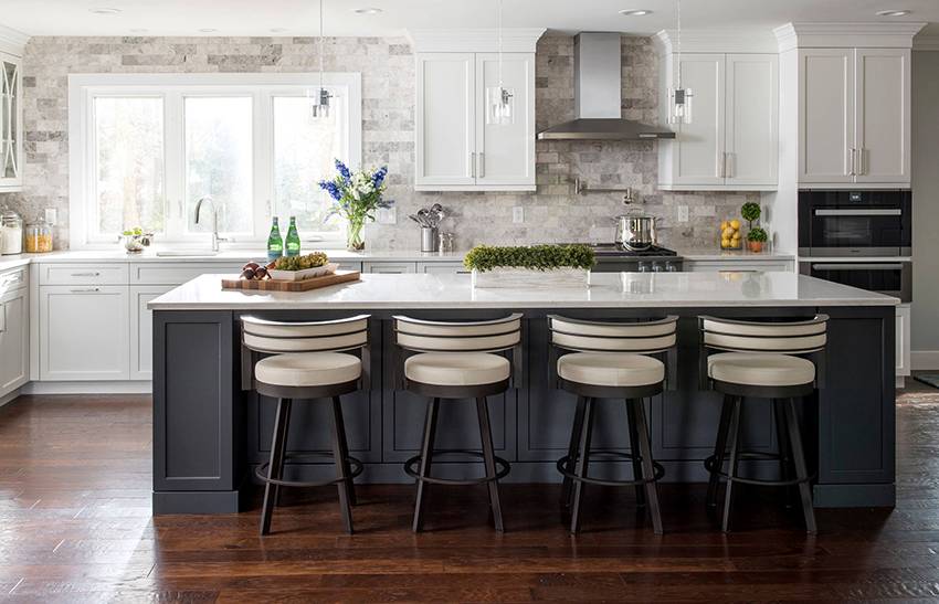 Светлая кухня – универсальное решение, которое подчеркнет просторность большого помещения и визуально увеличит маленькую комнату, наполнит ее воздухом. Белый имеет хорошую сочетаемость и, при желании, можно внести в интерьер совершенно новый декор без ущерба для его гармоничности с мебелью. Но, к сожалению, этот цвет не очень практичен. В большой семье с детьми будет тяжело содержать такую красоту в исходной чистоте.