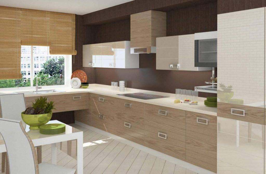 Расстановку мебели осуществляют, исходя из площади и формы помещения. Если оно небольшое, кухонный гарнитур ставят максимально компактно. В этом случае отличным вариантом станет кухня без верхних шкафов в стиле минимализм. Гарнитур ставят вдоль стены с окном. Это позволяет значительно сэкономить пространство. В помещении с большой площадью такой прием не используют.