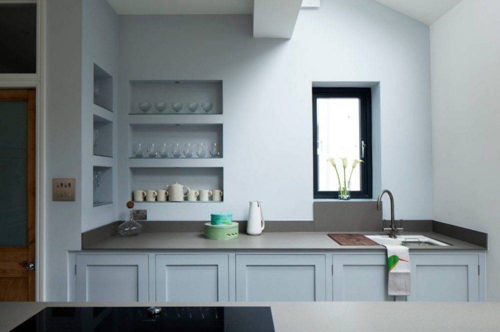 При условии, что кухня-ниша не закрыта полностью мебелью, ее стоит красиво оформить. Если хозяйка не является поклонницей пестрых тонов, помещение стоит выполнить в спокойной цветовой гамме со стенами. Их можно отделать при помощи гипсокартона и окрасить.