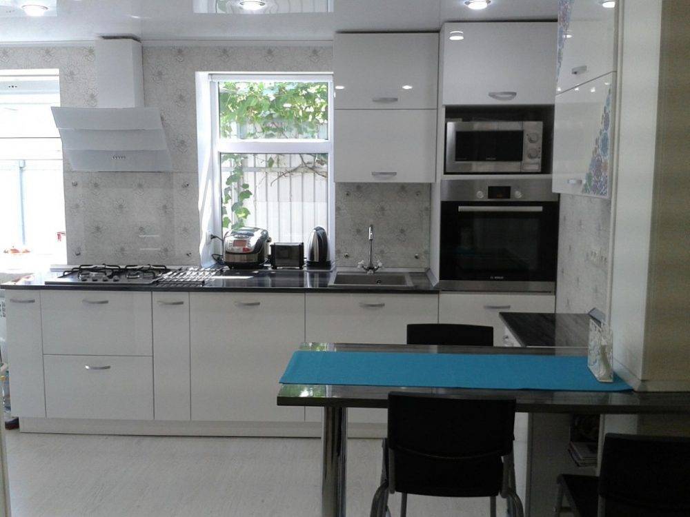 Идеальный вариант для сохранения свободного пространства и обустройства практичной кухни. Глянец монолитных фасадов визуально делает помещение больше.