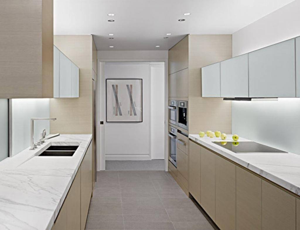 Гарнитур в минималистичной кухне должен растворяться в пространстве. Добиться этого можно путем: