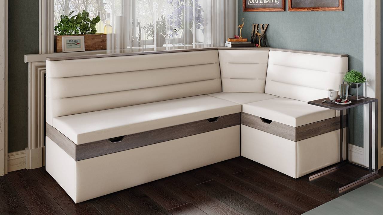 Лучшим вариантом кухонного гарнитура будет уголок с диванами, оснащенными ящиками для хранения вещей. Они должны быть просторными и удобно открываемыми. Следует учитывать, что ящики могут не позволить сидящим на диване людям расположиться с комфортом. Стоящие на полу короба не должны мешать ногам, поэтому их передние стенки рекомендуется делать скошенными или углубленными.