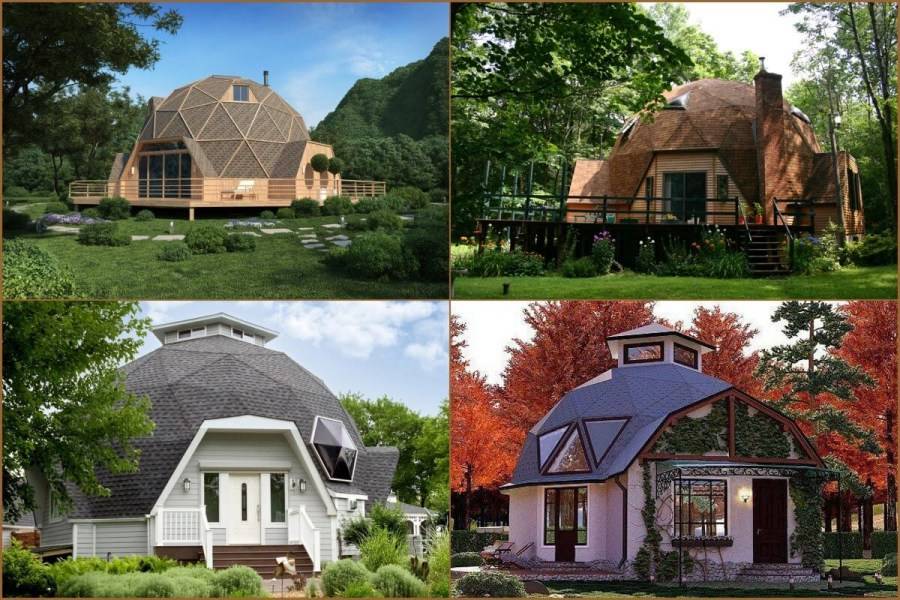 - дома купольного типа, в основе элементов которых лежит четырехгранный многогранник;