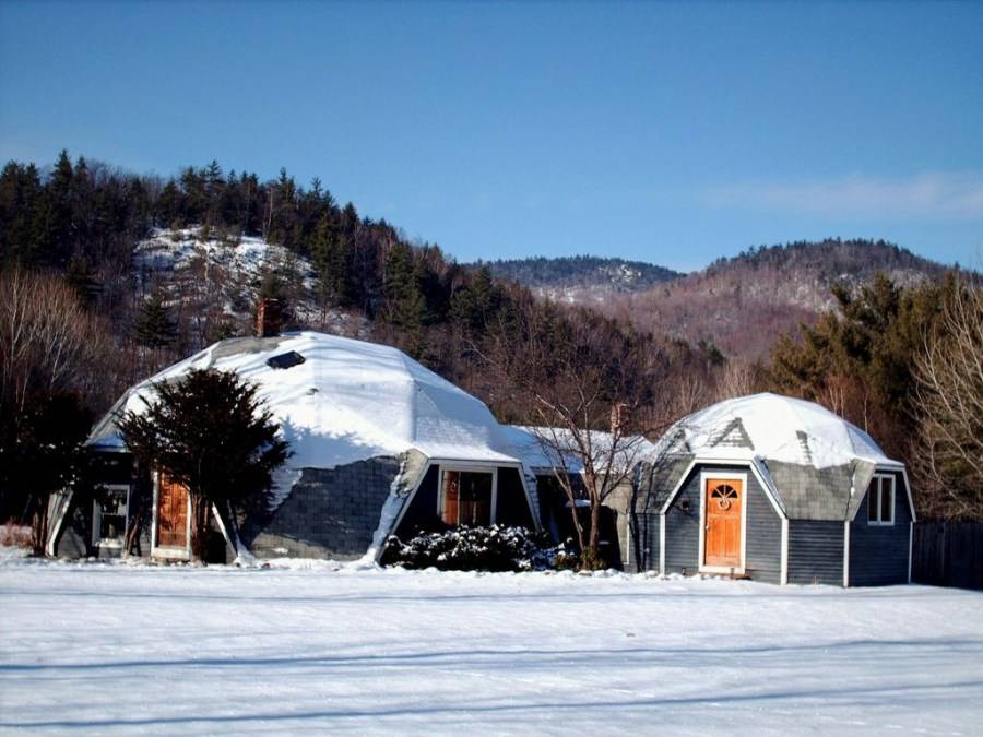 Энергоэффективность. Куполообразные здания медленнее теряют тепло и нуждаются в меньшем количестве энергии для обогрева. Также форма дома очень удобна для размещения на ней солнечных батарей.