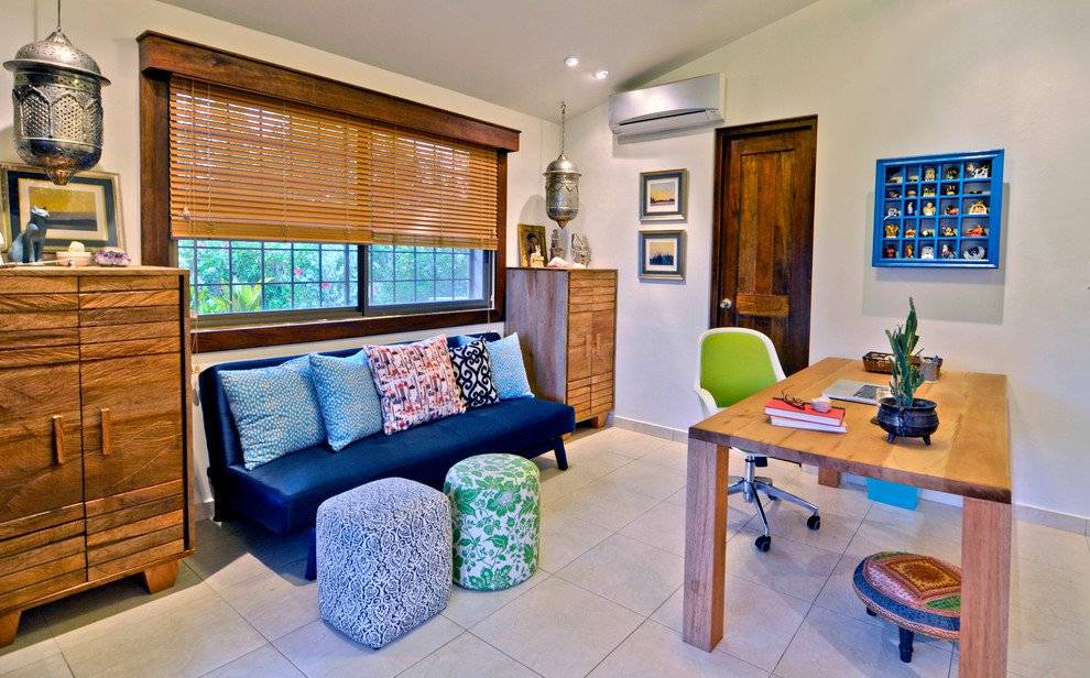 Но все-таки и чаще всего его приставляют к одной из стен сбоку или напротив рабочей зоны. Если в стене есть естественная ниша, то она всегда будет рада принять в свои объятия диван, не давая ему возможности занимать много основного места помещения.
