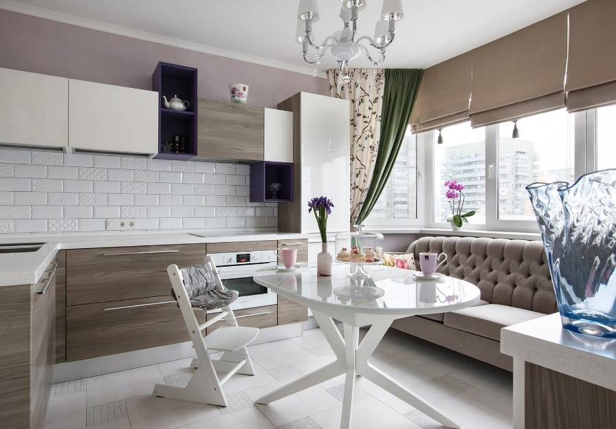 комфортабельность обеденной зоны, ведь вместо простых стульев будет стоять мягкий и удобный диван;