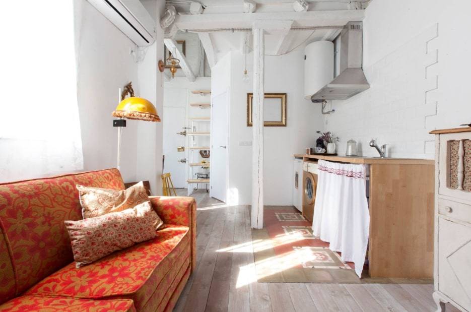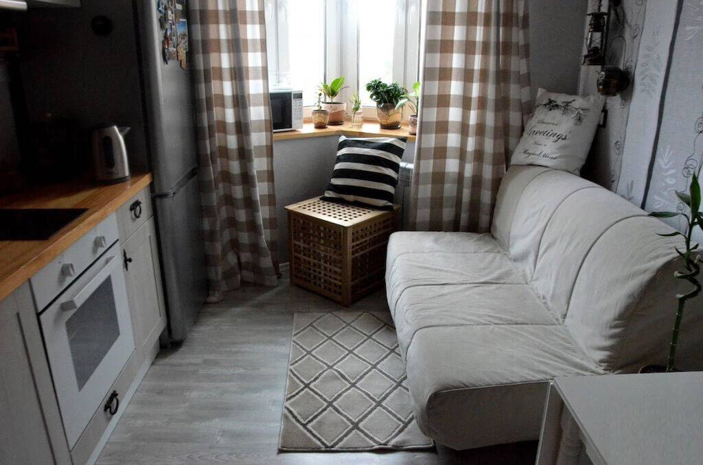 - маленькая кухня — небольшой диванчик у окна или в углу.
