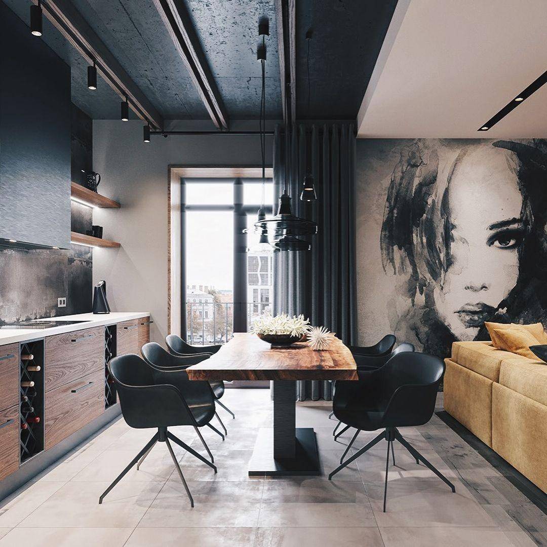 Для стиля лофт характерны большие внутренние помещения, четкая симметрия строгих линий. И неброские цвета.