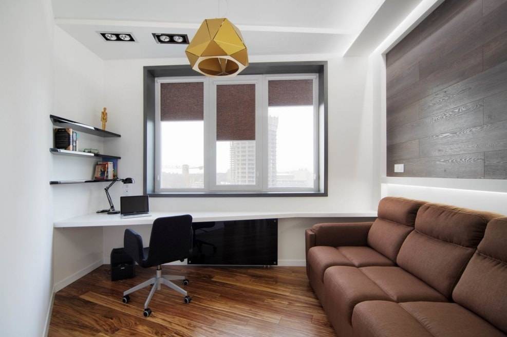 всегда выигрышное решение — подбор текстуры ламината под прилегающую к стене мебель, можно поступить и наоборот — подобрать мебель под уже оформленный ламинат, в любом случае такой синтез приносит свои дивиденды в виде чудесной интерьерной органики;