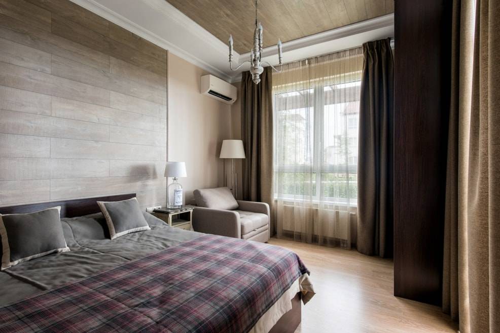 Выбирая ламинат в интерьер спальни, обязательно нужно обращать внимание на толщину покрытия. Стенам помещения не приходится выдерживать большую нагрузку, поэтому можно использовать недорогое покрытие небольшой толщины
