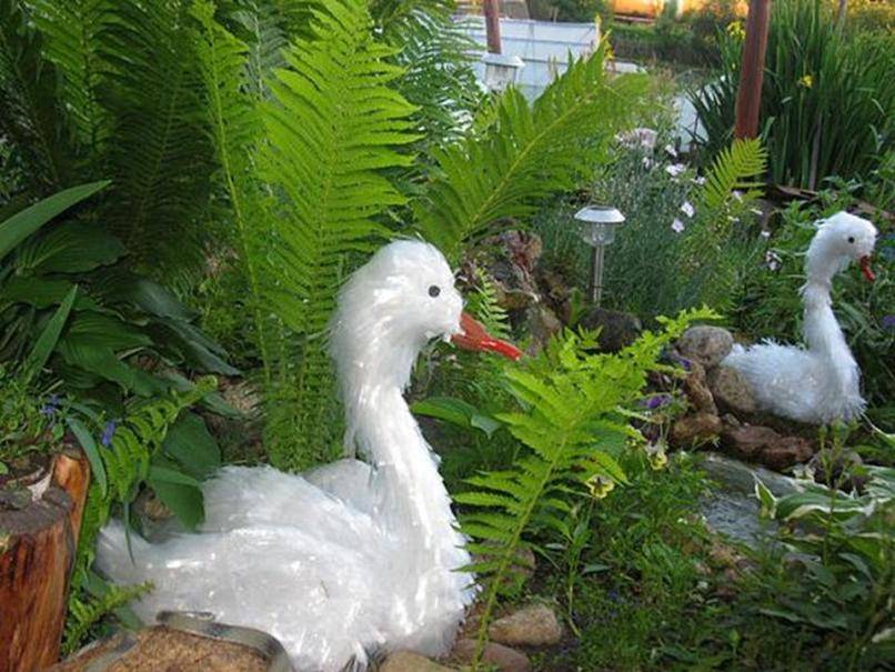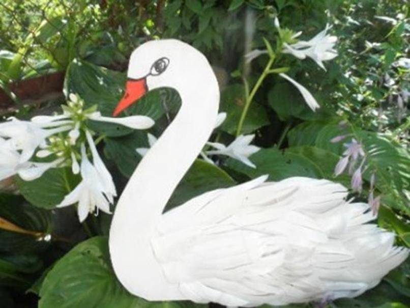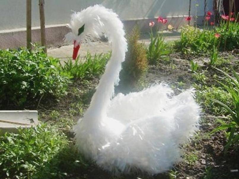 Для изготовления лебедя подойдут белые пластиковые бутылки – так садовая скульптура дольше сохранит привлекательность