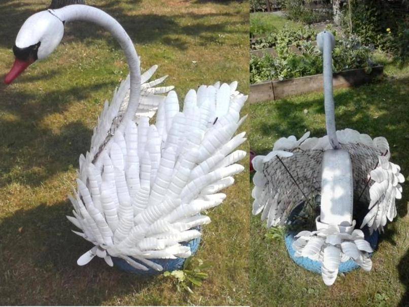 . Но такого, как удалось смастерить Алене я встретила впервые. Надеюсь и вам он тоже понравится и вы решите украсить свой участок таким прекрасным лебедем.Как сделать журавля из пластиковой бутылки.