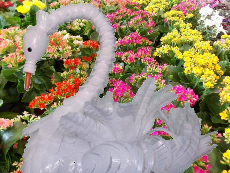 После выполнения фигуры лебедя необходимо дождаться полного ее высыхания, тщательно обработать наждачной бумагой, а потом окрасить по подобию живой птицы. Лебедь является символом верности, поэтому лучше всего сразу же соорудить ему пару. Такие фигурки оживят и разнообразят ландшафт дачного участка. В углубление из пластиковой бутылки можно посадить бархатцы, которые станут завершение композиции.