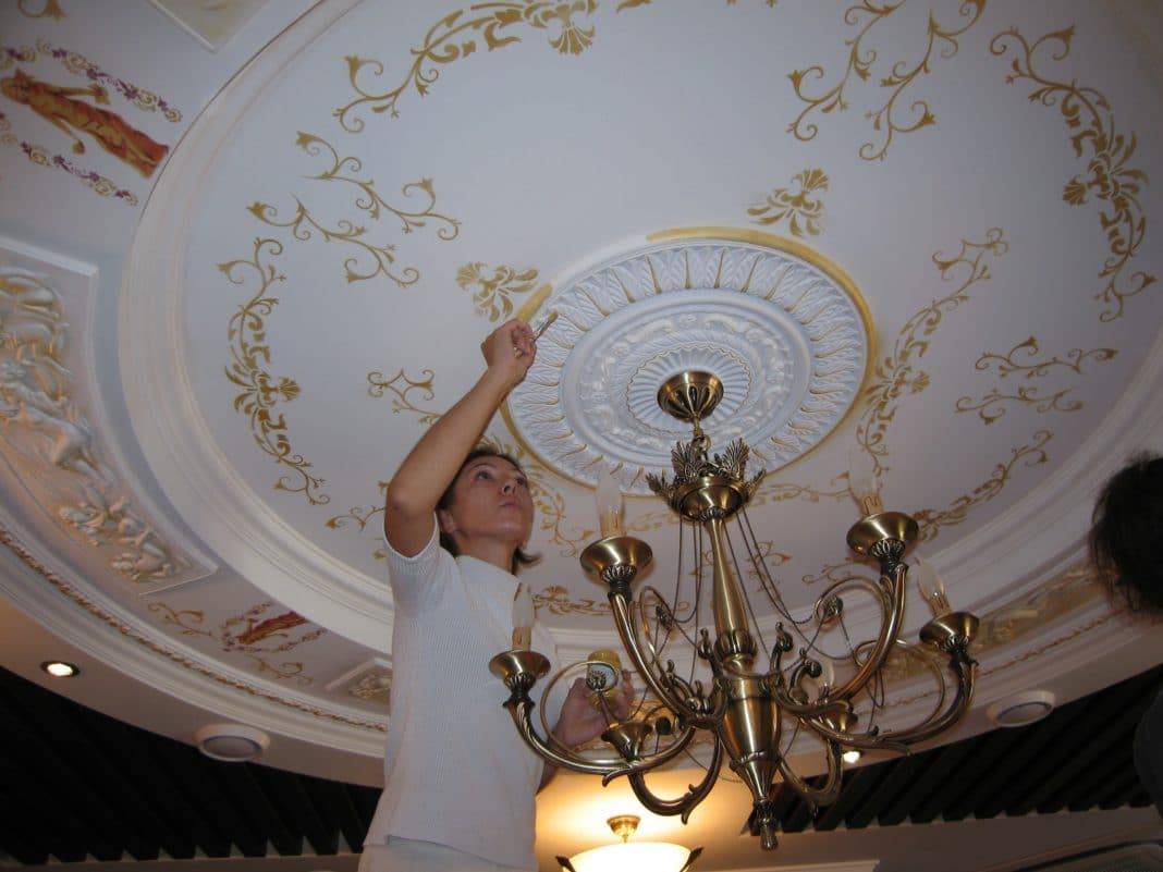 Кстати, рано или поздно даже вскрытую лаком лепнину придется реанимировать. Для этого нужно снять слой лака, после чего аккуратно затереть лепнину от краски. Следующий шаг это проверка декора на сломы и сколы. Если все в порядке, то можно покрывать поверхность грунтовкой и красить по новой. Если же возникают проблемы, то нужно в первую очередь разобраться со сколами и трещинами.