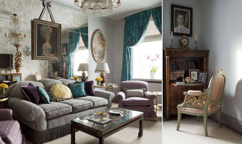 С аксессуарами проблем не возникает. На стены можно повесить черно-белые фотографии бабушек и дедушек или картину русского художника. Не забывайте о медных подсвечниках и торшерах с бахромой.
