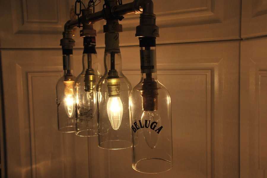 Одной из оригинальных идей самодельных люстр является бутылочная люстра. Понадобится: