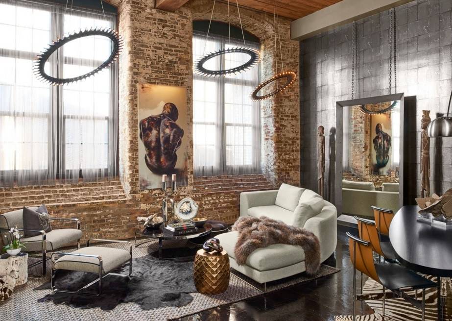 - Лофт. Брутальный дизайн люстры органично выглядит на фоне кирпичных стен и грубых деревянных балок. Однако с первого взгляда заметно, что эта суровая простота стала плодом напряжённой работы дизайнера.