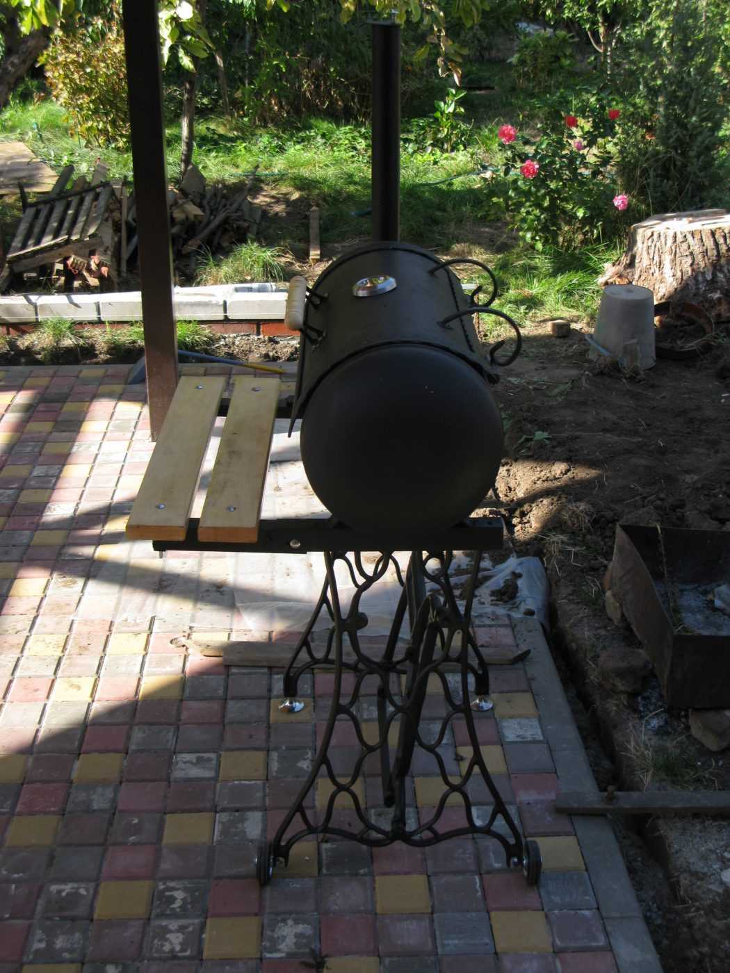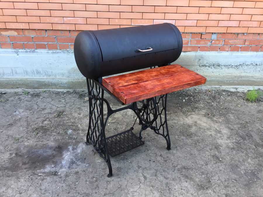 Не стоит выбрасывать «бабушкино наследство». По такой же технологии можно изготовить подрамник для топки. Если приварить его на станину ножной швейной машинки, а короб уложить сверху, то получится оригинальный мангал «под старину».