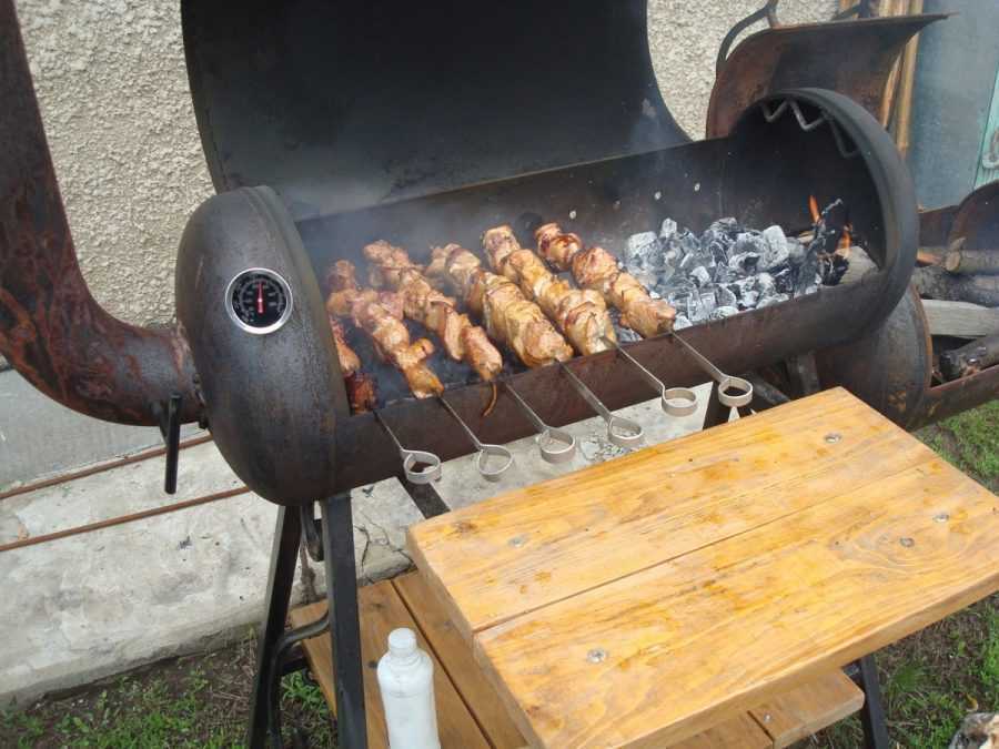 Такое приспособление для готовки мяса, по сравнению с обычным мангалом, обладает рядом преимуществ: