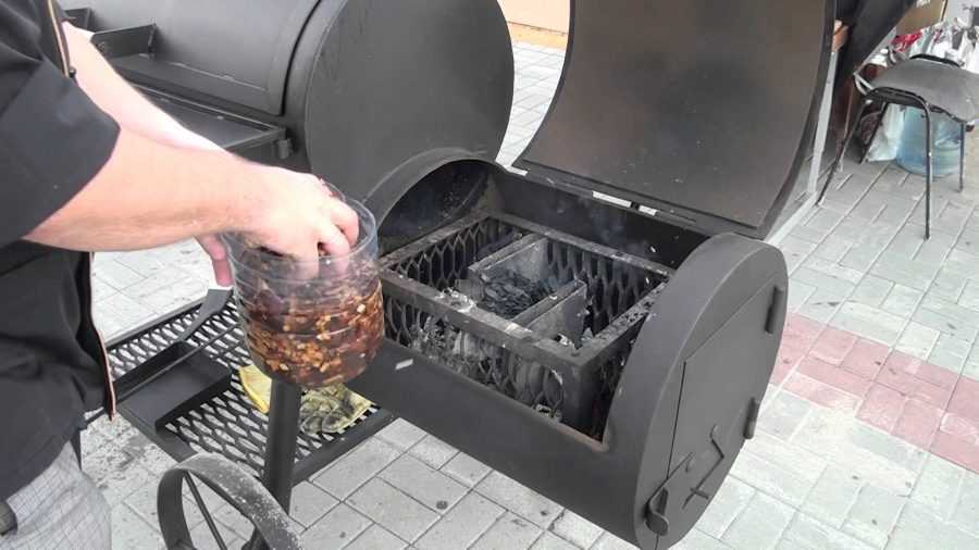 - Экологичность — мясо находится в стороне от огня и топлива, на него попадает дым. Эффективность приготовления будет высокой, даже если угля не будет много. Прожарка осуществляется за счет тепла от нагретого кожуха и дыма.