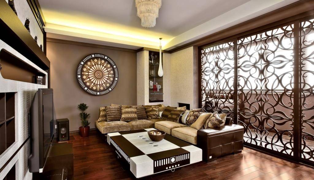 При оформлении дома в такой стилистике бывает непросто подобрать предметы мебели, определиться с дизайном окон, стен и потолка, ведь во всем нужно придерживаться единства. На первом месте в таком интерьере стоит роскошь Востока, и только после — функциональность и практичность.