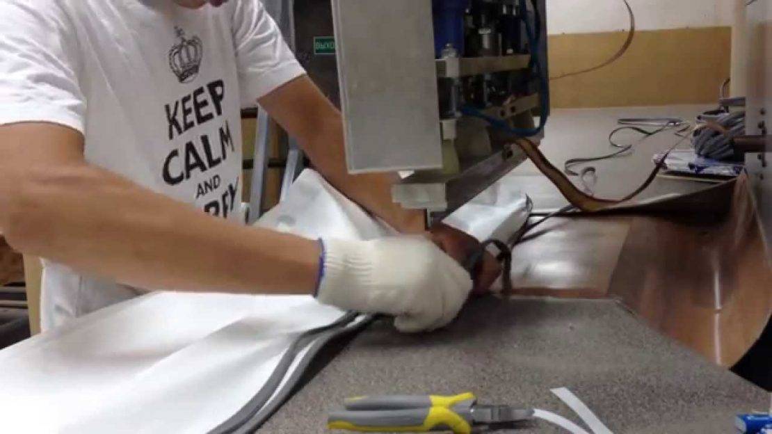 Две полосы поливинилхлоридной пленки свариваются токами высокой частоты на специальном оборудовании. Шов получается прочный, герметичный и практически незаметный. Суть метода заключается в следующем: края полотен точечно нагреваются электродами. Сваривание выполняется на молекулярном уровне. Точечный нагрев исключает вероятность плавления и повреждения пленки.