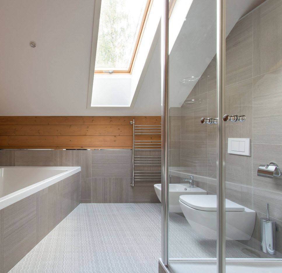 Если в ванной комнате нет кабины или душ находится за стеной, высота плитки может быть определена раковиной. Такие плитки будут своего рода высокими панелями, достигая почти 120 см. Если цвет материала и стен над ним контрастный, стоит знать, что горизонтальное деление поверхности, опускающееся чуть ниже половины высоты, визуально поднимет интерьер, а чуть выше понизит его.