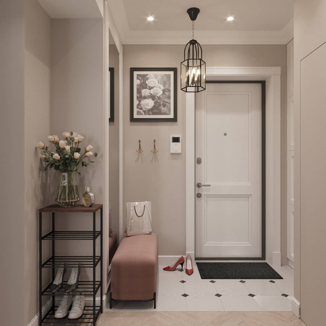 Светлая гамма — беспроигрышный вариант для любого небольшого помещения. Смело задейтсвуйте её в скромной входной зоне, чтобы наполнить комнату воздухом и оптически расширить границы помещения.