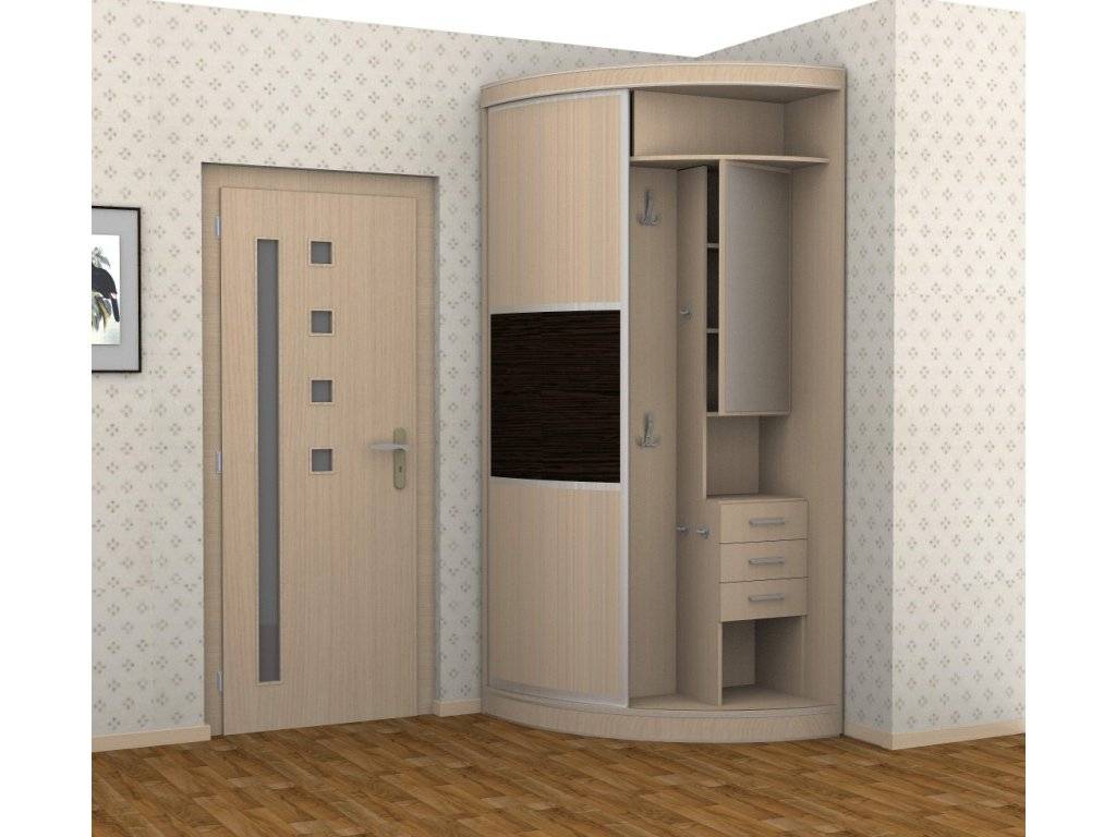 Практичными для маленького коридора считаются встроенные либо мини-модели. Угловой шкаф имеет стандартную комплектацию. Он может оснащаться шкафом для верхней одежды, открытой вешалкой, отделом для обуви, головных уборов, тумбой и так далее.