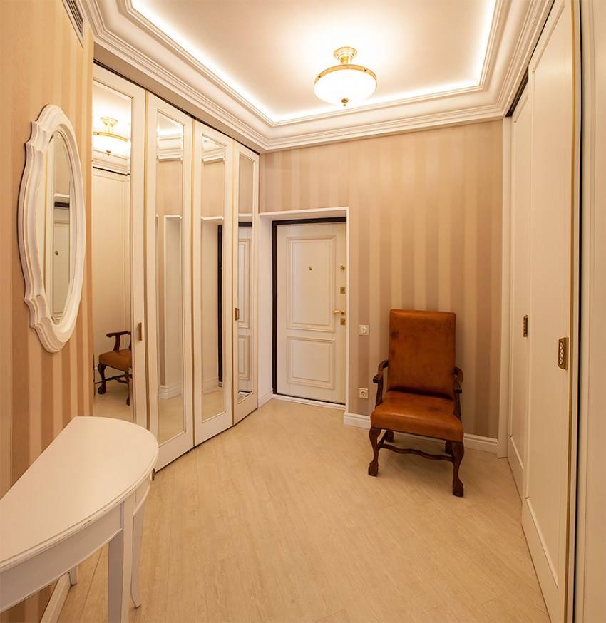 Чтобы прихожая выглядела шире и больше, установите подсветку в напольный плинтус, это дает отличный эффект.