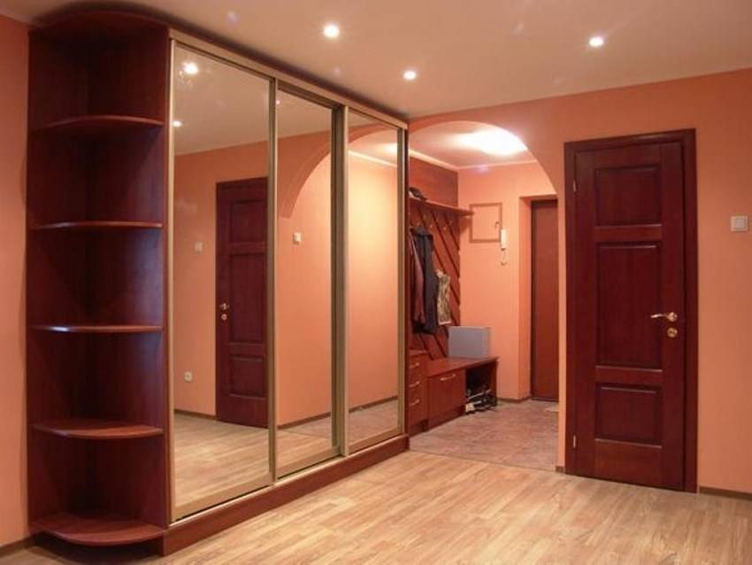 Встроенная прихожая считается самой практичной, удобной, в ней может не быть задней стенки. Кроме того в зависимости от размера ниши можно сделать различные полки и отдельно поставить раздвижные двери.