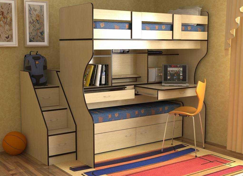 Стильная двухъярусная кровать-трансформер для детской спальни