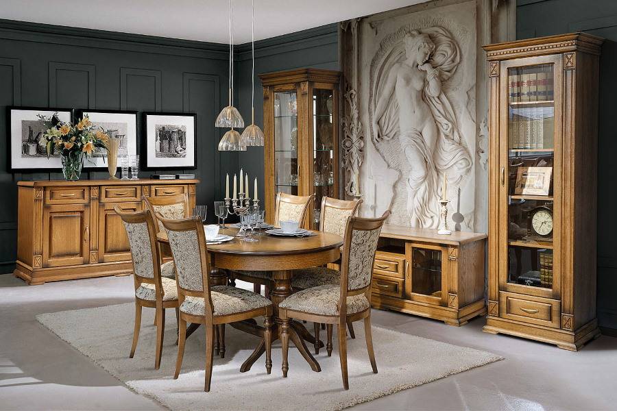 Мебель из дуба – чаще всего это массивные гарнитуры, украшенные резьбой