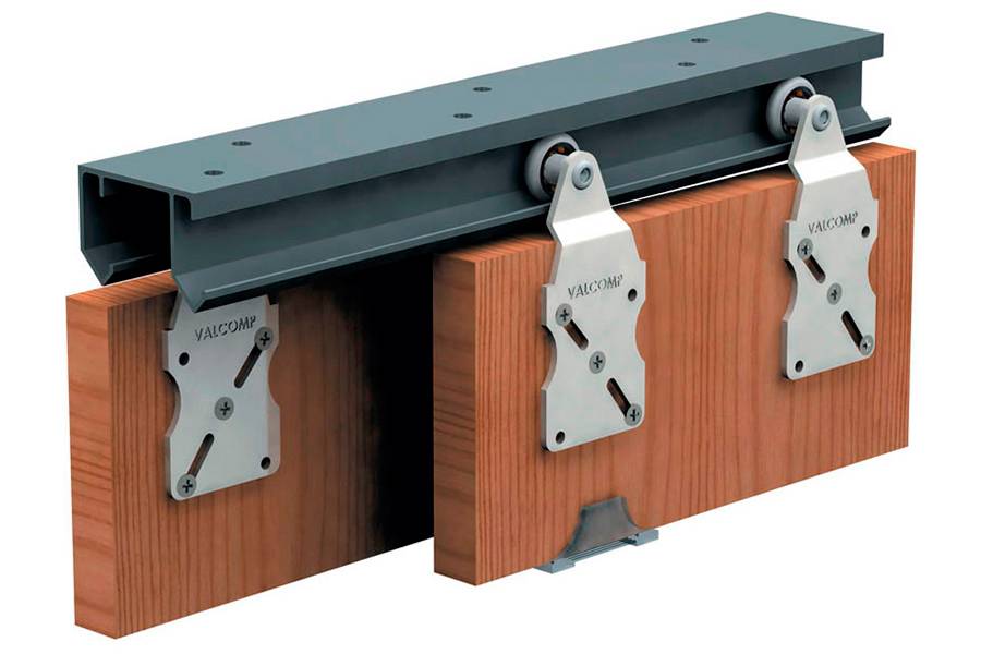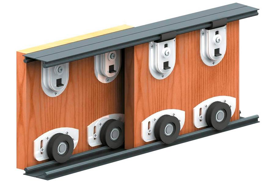 Выбор типа механизма направляющих зависит от вида изделия. Так, при монтаже каскадной двери на каждую створку ставят по два роликовых механизма и направляющие с 2 желобами, а для стеклянной оборудуют верхний и нижний рельсы.