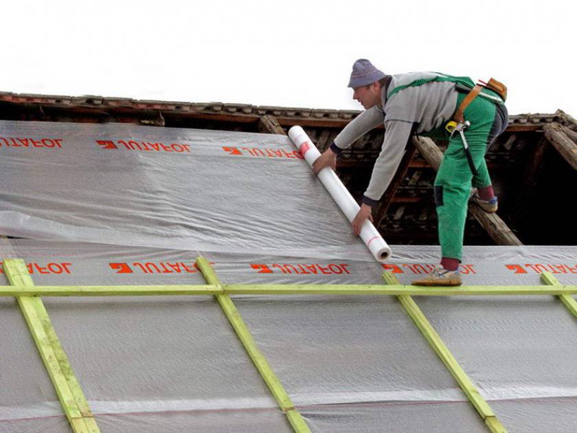 - Гидроизоляционная пленки, пропускающей пар, но останавливающей поступающую снаружи влагу.