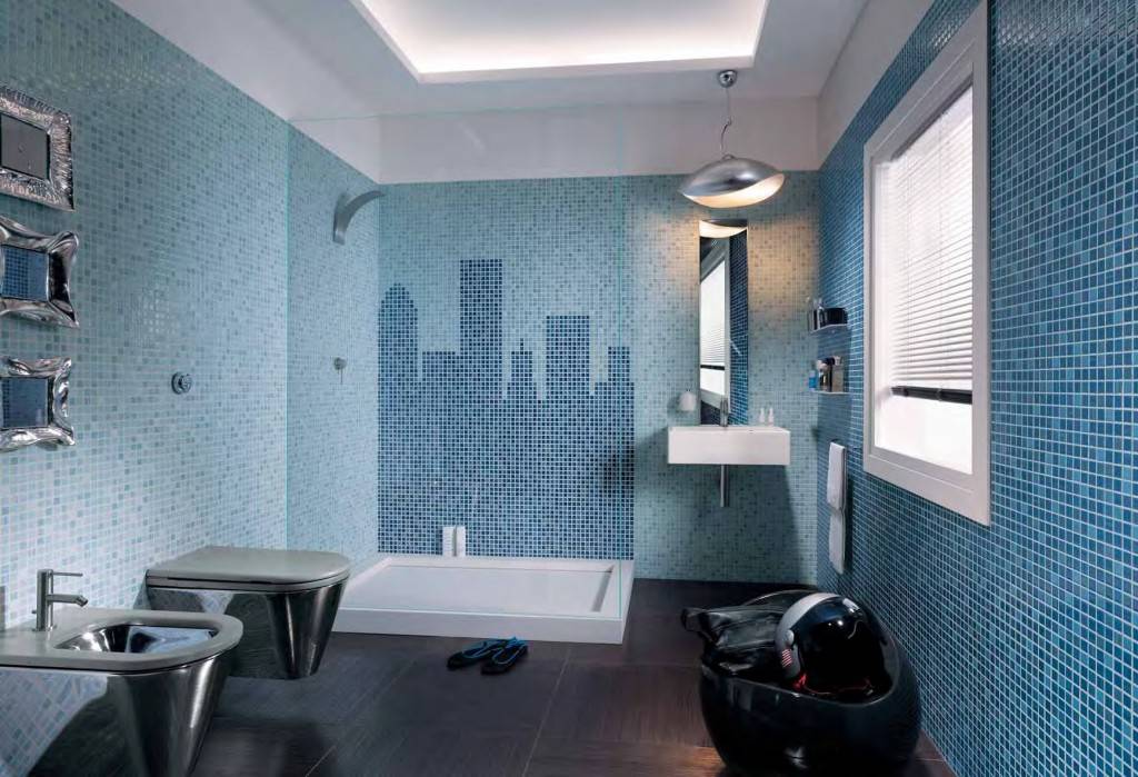 Рассмотрим основные виды современных мозаичных облицовочных материалов, используемых при декорировании ванных.