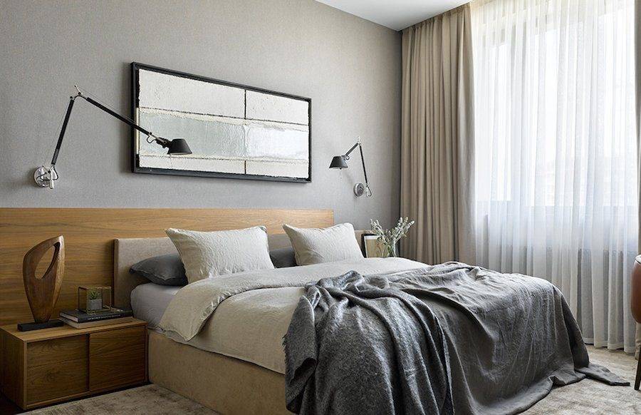 «Минимализм в интерьере спальни категорически не приемлет никакой навесной мебели: всевозможные полочки и стеллажи необходимо полностью исключить»