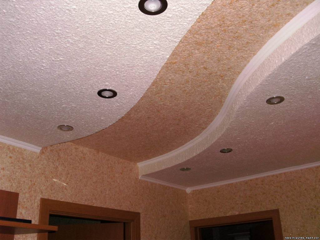 Кроме того, такой потолок будет постепенно впитывать запахи помещения, поэтому использовать жидкие обои на кухне не желательно.