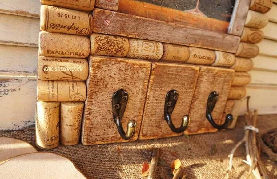 Если постараться, можно насобирать необходимое количество пробок, чтобы изготовить подобную ключницу. В качестве основы конструкции можно использовать фоторамку, а пробки удобно фиксировать горячим клеем.