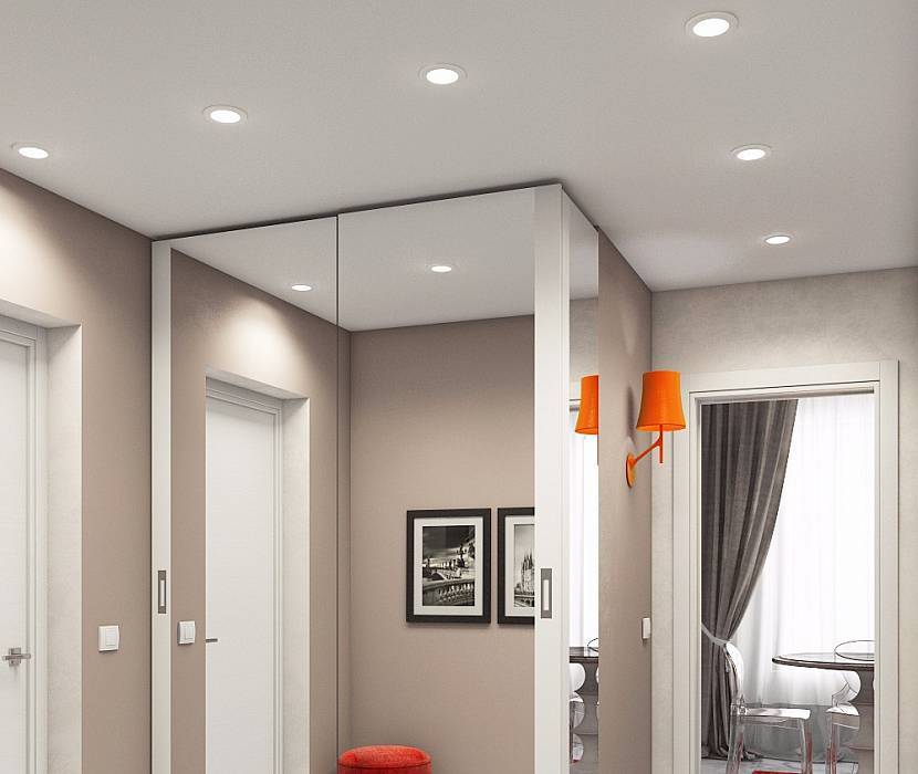 Если прихожая представлена в стиле минимализм, тогда красиво и стильно будут смотреться точечные светильники.