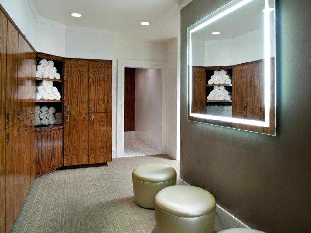 - Подсветка мебели, яркое потолочное освещение делают помещение ярким, и как результат — большим.