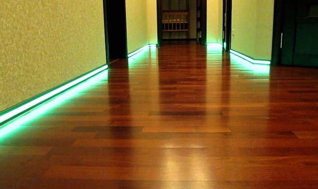 Монтаж светодиодов в плинтусе. Подсветка пола часто используется в качестве ночного освещения. С ее помощью можно легко передвигаться по помещению, не включая основного света.