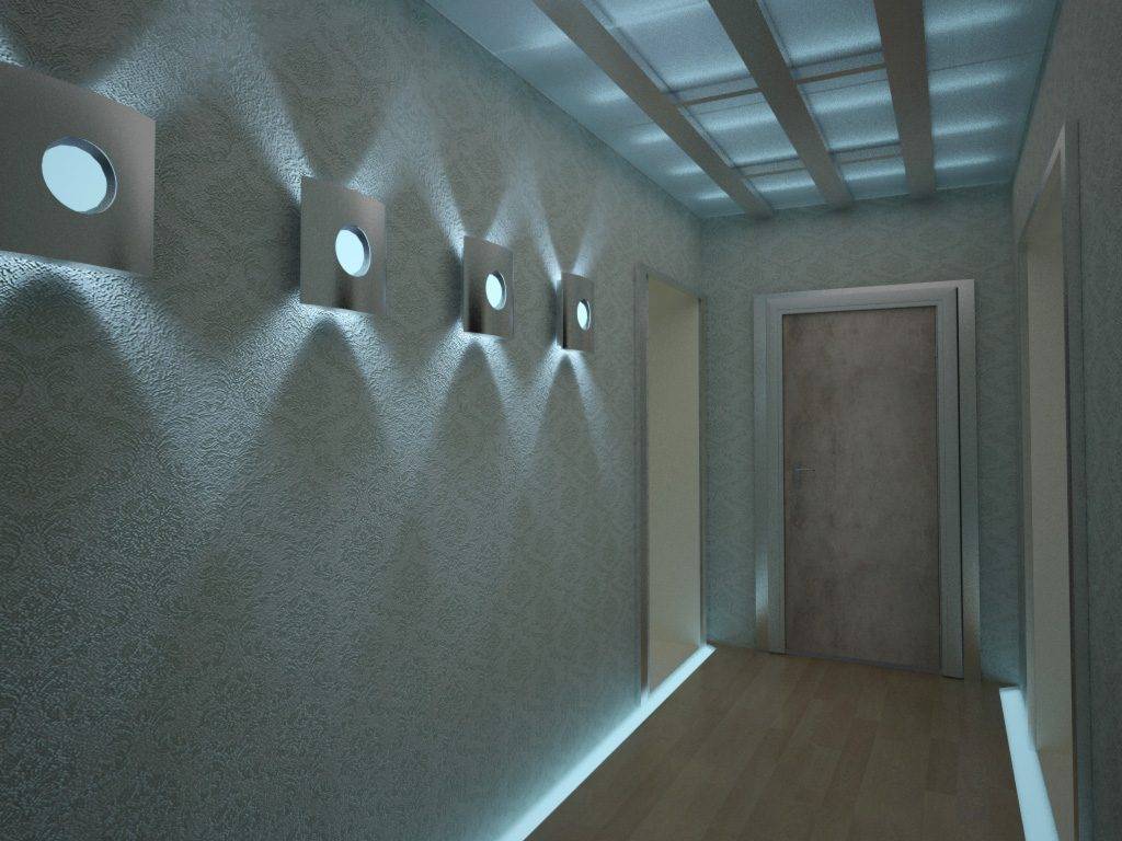 В освещении коридора в квартире немаловажное место занимает подсветка стен и пола. В первом случае большой популярностью пользуются бра