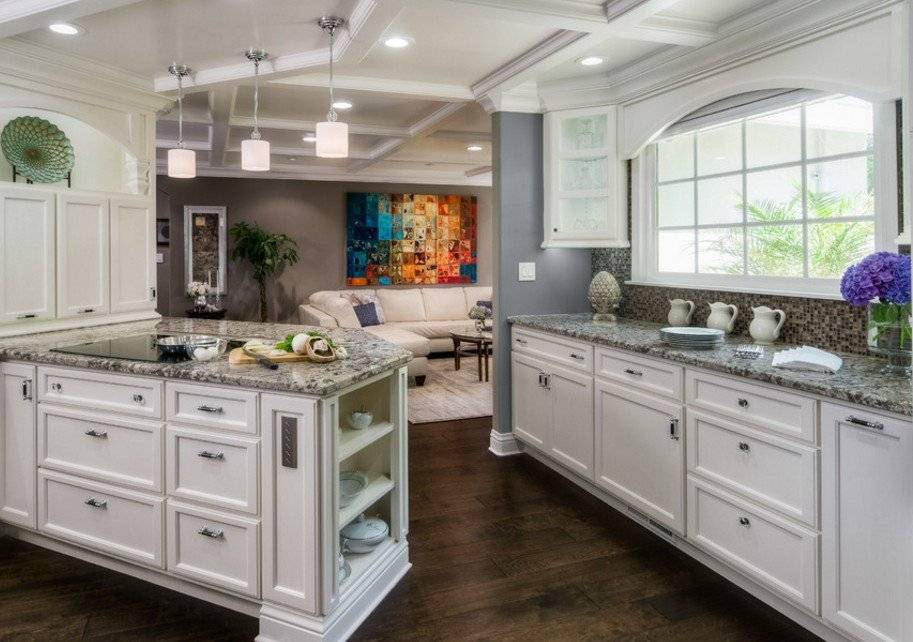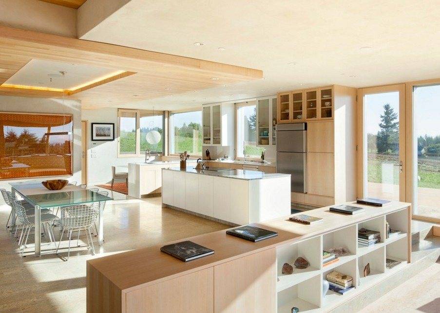 Классическая кухня, совмещенная с гостиной есть и будет находиться вне времени, что подтвердят эти фото.